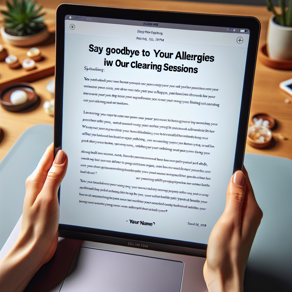 Clearing of up to 30 identified allergens with eight weeks of follow-up maintenance to monitor your progress and support clearing. Continuation of diagnostic testing. Communication and session notes are delivered to you via email.